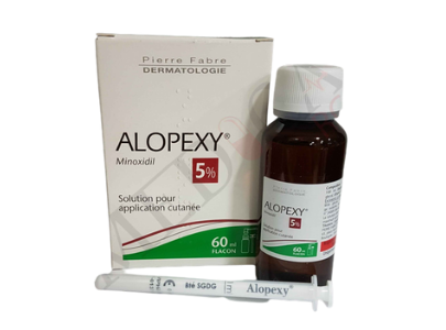 A topical solution containing 5% minoxidil, designed to promote hair growth and treat hair thinning or baldness.