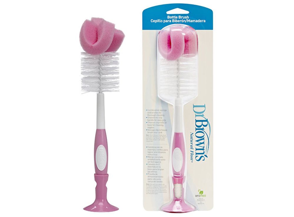 Dr Brown's Bottle Brush in pink color offers gentle but effective cleaning for bottles and nipples, ensuring thorough hygiene.